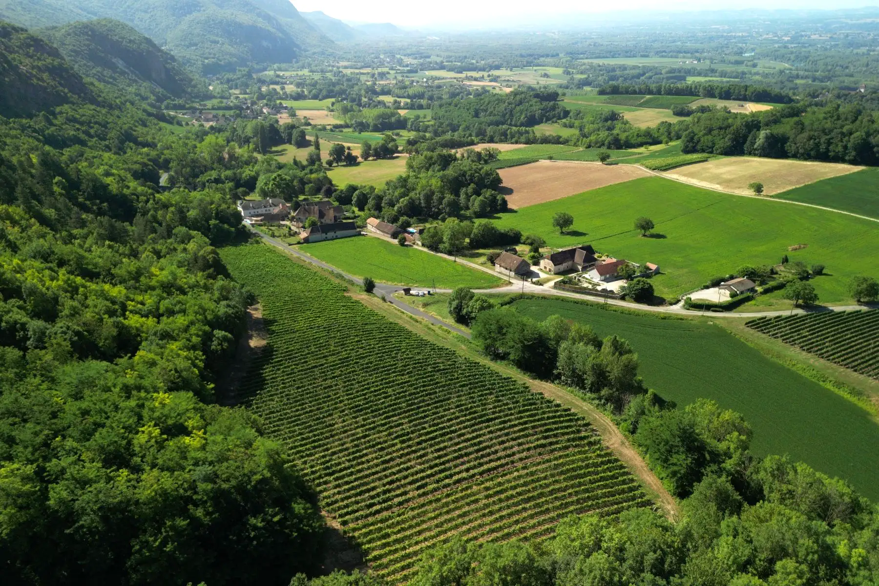 Cette situation géographique place le vignoble à la rencontre de plusieurs influences : la vallée du Rhône, les premières pentes alpines et les plateaux calcaires du Bugey. Le domaine bénéficie ainsi d’un environnement préservé, verdoyant et peu urbanisé, tout en restant facilement accessible depuis Lyon, Chambéry ou Bourg-en-Bresse.